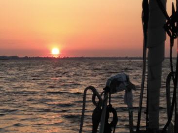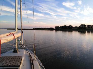 Sonne, Wind achterlich von West mit 3, schöner Sonnenuntergang über Jasmunder Bodden, schönes Segeln