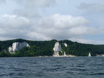 Immernoch Traum-Sommerwetter und wir fahren erst kurz unter Motor Kreidefelsen schauen und setzen dann die Segel, um mit achterlichen Winden(3-4 Bf aus Ost) und 4-5 Kn Fahrt die Küste entlang zu gleiten. Es geht gut voran. Danny spielt wieder Gitarre, die Wellen plätschern und langsam kommt der dornbusch in Sicht. Vorbei an der Ansteuerungstonne Hiddensee und weiter gesegelt bis kurz vor den Hafen Vitte. Schönes Plätzchen zum Festmachen gefunden, Essen, Rum, Sternschnuppen, Schlafen...War ein top Sommersegeltag...