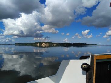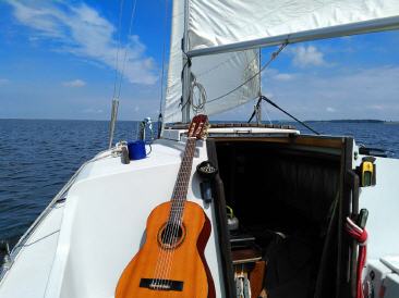 Da ich noch etwas Zeit habe und die Wetterprognose ganz ok ist, mache ich nochmal los nach Ralswiek. Bei Westlichem Wind erst mal wieder mit dem Jockel, aber Richtung Wittower Fähre setze ich Segel und verbringe einen schönen sommerlichen Tag bei gemütlichem Gleiten. Ich repariere meine Gitarre, bastel am Boot und mach mir ab und an mal einen Kaffee...das Leben kann so schön sein....