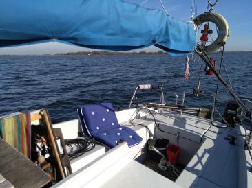 Legen gegen Mittag ab. Die Sonne strahlt vom wolkenlosen Himmel. Der Wind hat von Süd auf Ost gedreht und weht recht frisch. Fahren mit Fock entspannt nach Schaprode zurück. Hier schließt sich der Kreis und ein sehr schöner Oktobertörn geht leider viel zu früh zu Ende.