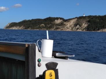 Bin mit Stefan Abends gelandet und gleich los, wegen extremem Seefieber. Haben dann schnell gemerkt, dass der Wind doch recht frisch von vorne weht (West)und sind nach einer Stunde durchgeschaukelt und von Gischt getroffen am Ankerplatz gelandet und der Wind frischte dann noch mehr auf. Trotz Abdeckung gab es dann die ganze Nacht Seegang am Anker, wo wir extra noch die Leine verlängert haben.