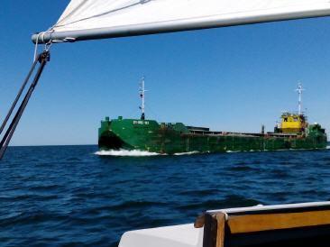 1200 abgelegt und motoren zur Hauptfahrinne setzen dann Segel und machen gute 4 kn bei W3-4 1400 Wind nimmt ab 1500 ausgebaumt Schmetterling 1550 Ziegelgrabenbrücke zu spät, gehen backbord Dänholm durch mit Mast legen 1600 Schmetterling und dann weiter mit wechselndem Bug duch den Strelasund 1715 Wind ist eingeschlafen, Segel geborgen, Motor 4,6 kn 1930 Wind bis 4 von Ost große Welle gegen an, setzen Segel, kreuzen auf 2045 Wind hat nachgelassen, motoren Erdgastrasse Nordstream, viele Baggerschiffe, Fahrinne in den Peenestrom unbeleuchtet , dank Richtfeuer gut zu machen, kurz vorm Hafen Freest dichter Nebel, gehen Beileger bei Matthias seinem Boot 2330 angelegt, 47 sm