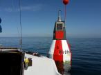 Es ist noch recht frisch, aber an diesem Tag strahlt die Sonne dermaßen, dass es Mittags doch schon etwas von einem Sommerhauch hat und daher tucker ich bei null Wind mal ganz gemühtlich über das glatte Wasser zur Ansteuerungstonne Hiddensee und genieße die Sonnenstrahlen und lasse mich langsam etwas über die Ostsee treiben. Da keinen Wellen sind, kann man tatsächlich bis zu 10 Meter tief den Grund sehen, da ja auch kaum Algen und diverses Grünzeug am blühen sind. So häng ich dann eine Weile über den Bordrand und starre ins Wasser, während von oben die Sonne strahlt. Ein schöner erster Saisontag. Ich nehme das mal als gutes Omen und freu mich auf den kommenden Sommer.