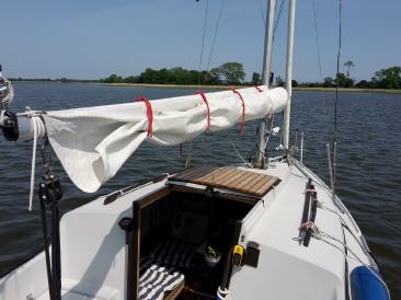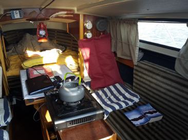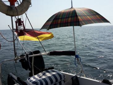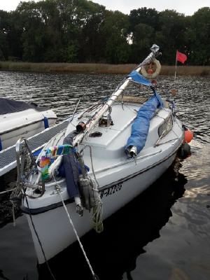 Werde doch immer häufig von anderen Seglern angesprochen. Es ist eine Mischung aus Neugierde, Nostalgie und Mitleid..irgendwie so..aber ich freu mich in jedem Fall. Man kommt ins Gespräch und kann Erfahrungen und Erlebnisse austauschen. Da wird ein Kaffee gereicht und dort beim Anlegen geholfen und auch mal aufs Boot eingeladen. Man ist dann doch nicht so alleine. Eben waren zwei ganz erstaunt über die innen liegende Rollreffanlage, sie haben wohl mit ihrem kleineren Boot immer Schwierigkeiten mit der außen liegenden. Da wusste ich jetzt auch nicht wirklich weiter. Die Leine ist natürlich wichtig und deren Oberfläche. Als sie weg waren, war ich dann doch erstaunt, dass dieser komische Ostimproquatsch so reibungslos funktioniert. Seit Jahren hatte ich jetzt keine Schwierigkeiten. Aber ich achte auch immer darauf, dass alles gut geschmiert ist, frei läuft und die Fock auch straff durchgesetzt ist. Dann geht das eigentlich ohne Probleme. Und die Wasserproblematik habe ich nun auch schon Jahre im Griff, nachdem ich einmal Eimerweise Wasser im Boot hatte. Gehen tut alles irgendwann. Man muss sich nur irgendwie damit auseinandersetzen und manches braucht manchmal seine Zeit.