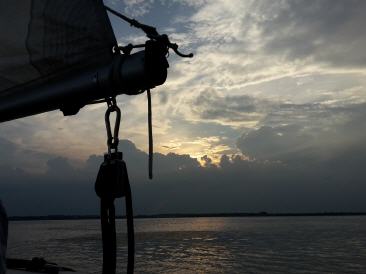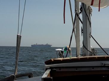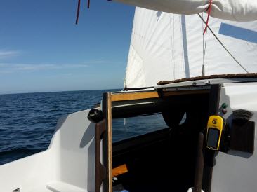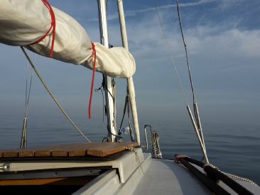 An der Stelle sei auch nochmal für alle Dickschifffahrer und alle Binnenjollifahrer erwähnt, dass es aufgrund der Welle und der besonderen Widrigkeiten des Schlingern des Bootes und der damit immer verbundenen beschwerlichen Manöver, im Verhältnis zum Dickschiff deutlich anstrengender auf derselben zurückgelegten Strecke ist. Daher kann man meiner Meinung nach guten Gewissens, um einen Vergleich mit den hier in diesen Seegebieten üblichen Booten zu ziehen, davon ausgehen, dass die Strecken von der Anstrengung her eher um den Faktor 2-3 zu erweitern sind. Sprich eine Überfahrt mit der Jolle von 50 sm, würde demnach mindestens einem Schlag mit einem größren Dickschiff von 100 -150 sm entsprechen. Da ich schon viel auf Dickschiffen gefahren bin, halte ich das durchaus für realistisch. Daher lässt sich die reine gefahrene Strecke zwischen diesen völlig unterschiedlichen Fahrzeugen nicht so einfach vergleichen!