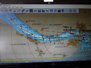 Segel daher auch frohen Mutes Richtung Stralsund und genieße die Ruhe und Einsamkeit. Komme rechtzeitig vor der 1220 Brückenöffnung an und der Wind kommt immer noch gut achterlich ...kaum habe ich jedoch die Klappbrücken passiert und nähere mich der ersten Kurve im Strelasund, kommt der Wind genau von vorne und zwar mit bis zu 4 BF aus Ost. Schöne Wurst, dicke Welle und schlechte Laune.