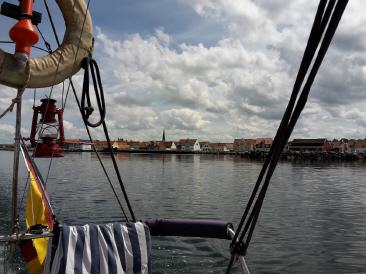 Um nicht ganz dem Hafenkoller zu verfallen und da Stefan ja auch irgendwann nach Hause muss, fahren wir mit westlichen 3-4 Bf wieder zurück nach Aalborg. Am Abend frischt es wieder auf 5-6 auf und es gibt Regen und Hagel. Es wird tagsüber aber noch ein schönes Treiben-lassen mit gereffter Fock und vielen Gesprächen. Stefan nimmt langsam Abschied. Ich hätte es ihm gegönnt, dass wir es bis zur Nordsee gemeinsam geschafft hätten, aber es soll nicht sein.