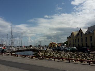Bin so aufgeregt, dass ich sehr unruhig schlafe...Um 7 Uhr legen wir ab und wollen erstmal Richtung Kopenhagen. Der Wind kommt tatsächlich mit moderater 3 aus SO und die Ostsee hat kaum Wellen. Erst segeln wir noch, aber dann schläft der Wind ein und wir motoren bei sonnigem Wetter munter Richtung Kopenhagen. Es ist etwas diesig und so entschwindet der Dornbusch recht bald und Rügen sowieso...um uns rum einfach nichts. Bis wir dann in die Frachterlinie kommen, aber das geht ganz gut, obwohl relativ viel Verkehr ist. Hier etwas die Geschwindigkeit geändert und da etwas den Kurs und schon passt das. Das AIS ist wie immer sehr hilfreich dabei. Stimmung an Bord gut. Fahren und fahren, aber kein Land in Sicht. Dann endlich Klintholm querab, dann wieder nichts und dann endlich die Öresundbrücke vor uns. Diesmal kann uns nichts mehr aufhalten!!! Wind und Welle von hinten bei 2-3 Bf. Aber sie kommt und kommt nicht näher. Dauert dann doch ganz schön. Und dann ist es endlich soweit: wir fahren mit der "Tide 2" unter der Öresundbrücke durch, ein großer Moment. Ich freue mich sehr. Und alles im Abendrot. Sind etwas euphorisiert. Überlegen wie es nun weiter geht. Die Windprognosen sind weiterhin auf unserer Seite, also beschließen wir einfach weiter zu fahren - erstmal Richtung Helsingör. Wird also wieder nichts mit der Meerjungfrau...Ich schlafe zuerst und wir motoren mit Segel durch die recht helle und klare Nacht und dazu noch Vollmond. Als ich Stefan ablöse strahlt die Sonne schon die ersten warmen Strahlen aufs Deck und wir sind Höhe Helsingör. Stefan geht schlafen und endlich reicht der Wind zum Segeln. Immer noch SW jetzt mit 3-4 Bf - nächstes Ziel Anholt. Da ist er nun der Kattegat, das verrufene große Ding, das Wellenmonster, das Unberechenbare und wir mitten drauf. Kaum sind wir aus der Landabdeckung, nehmen die Wellen auch schon mächtig auf einen Meter zu und das auch noch bei Kreuzseen und immer noch leicht zunehmendem Wind. Am Ende sind es gute 4 Bf und gute 1 Meter Wellen. Das Groß ist gerefft und die Fock bleibt drinne, so geht es ganz gut mit 5 Knoten voran. Weit und breit nur Wasser. Die Sonne scheint und Stefan ist irgendwann auch wieder an Deck. Die Wellen machen uns doch sehr zu schaffen, es schaukelt recht doll. Stefan muss sich erbrechen und auch ich bin ganz schön durch. Aber das können wir nun nicht ändern. Es geht immer weiter gen Norden. Anholt ist sehr flach, daher fahren wir sehr lange in die unendliche Weite, bevor es endlich auftaucht. Und dann ist es soweit... das Unvorstellbare ist eingetreten: Anholt voraus. Und wir fahren regelrecht ungläubig in den schönen Hafen und legen an.