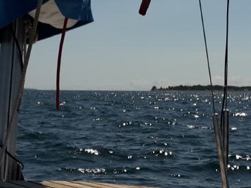 Also Leinen los und schon geht es bei strahlender Sonne raus aus dem Hafen und da kommen mir schon die ersten Zweifel an dem Wetterbericht...es gibt keinen Wind aus West mehr, sondern bedingt auch durch die Thermik, kräftigen Wind aus Nord. Mist, jetzt aussenrum ist nicht gut und gegenan motoren hab ich keine Lust. Also neues Ziel: über Stralsund und den Greifswalder Bodden nach Usedom. Sollte doch ein Klacks sein und N/NW 3 is doch super...