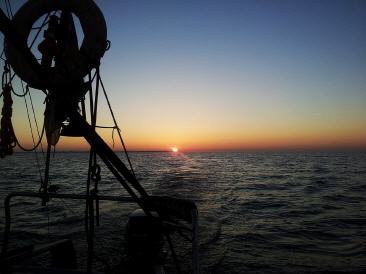 Endlich ist der Frühling ist da und das Wetter scheint günstig um mal einen größeren Schlag zu wagen. Rund Rügen bietet sich an und da sich kein Mitsegler gefunden hat, fahr ich halt Einhand los. Diesmal hab ich zum Glück noch ganz gut in Erinnerung, dass es von Schaprode nach Lohme doch ein ganzes Stück ist und ich habe auch auf dem Schirm, dass im Mai die Sonne nicht ewig am Himmel steht. Also mache ich schnell die Leinen los und breche auf. Der Wind kommt westlich, so dass ich ganz gut an Arkona vorbei Richtung Lohme komme. Ich habe diesmal auch daran gedacht, dass ich allein unterwegs bin und mich rechtzeitig warm angezogen und mich um Essen und Trinken gekümmert, damit dies unterwegs nicht wieder zum Problem wird. Es tut gut mit dem Boot hier draußen zu sein, alle Handgriffe sind routiniert und das Boot läuft ganz gut. Querab liegt inzwischen Arkona und hinter mir kündigt sich langsam ein spektakulärer Sonnenuntergang an. Es tut unheimlich gut wieder hier zu sein, Freiheit. Langsam wird es dunkel und ich komme in den Hafen von Lohme und traue meinen Augen nicht, liegt doch dort die Victoria (ein Traditionssegler) und auf ihr ist unter anderem Dirk. Der ist auch mehr als erstaunt mich hier zu sehen. Ich gehe Längseits, die Freude ist groß und da zufällig gerade auch noch Herrentag ist, gibt es viel Wein und Rum und einen Wunderschönen Abend an Bord des Traditionsseglers. Wär hatte das gedacht, man ist doch nicht so allein...