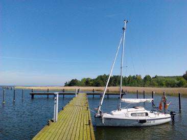 Am Morgen erstmal ganz entspannt gefrühstückt, leider kommt der Wind sehr schwach aus südlichen Richtungen, aber dafür Sonne satt...ab Barhöft hissen wir die Segel und können endlich mal den Jockel schweigen lassen und genießen die schöne Natur am Bock und auf dem Weg durch die Boddenlandschaft nach Zingst...Südseefeeling...besser geht kaum...diese Art des Reisens begeistert mich komischerweise immer wieder aufs Neue und dieses Gefühl scheint sich unerschöpflich nie zu verbrauchen...anlegen in Zingst ist wegen der Querströmung immer etwas heikel, zum Glück weiß ich das diesmal vorher und hab mich drauf eingerichtet und dank der gespannten Leinen von den Dalben zum Steg, geht das dann auch ganz gut...außerdem wird uns geholfen und alles wird gut..neben uns liegt auch ein Jollenkreuzer, im Volksmund auch "Blaubeere"genannt...darauf ein älteres Pärchen, welches auf diese Art anschaulich beweist, dass auch weniger mehr sein kann...